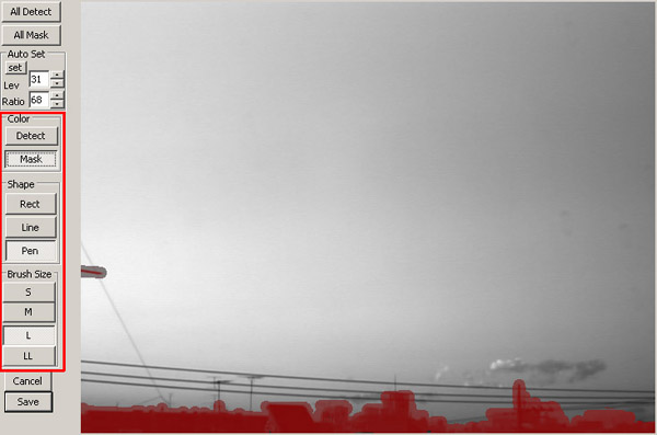 Do as followings ( Area mask pattern except "DA-ALL.bmp" must have size equal to input on video size).