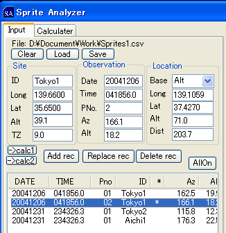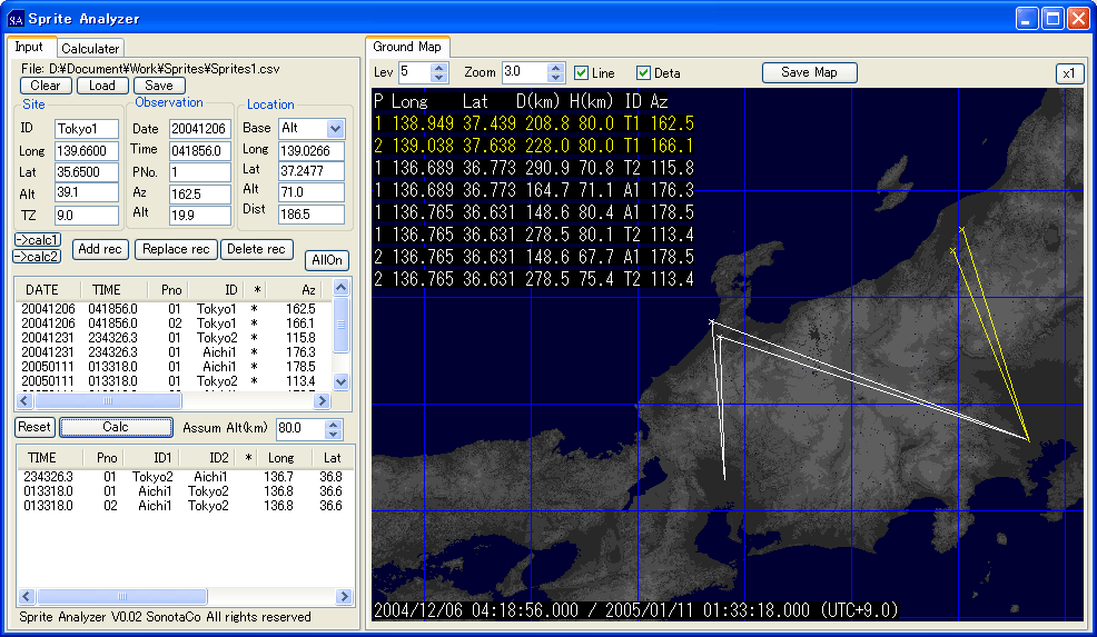 Sprite Analyzer は UFOCaptureを使用してスプライト観測されている方のための発生位置高度計算ツールです。