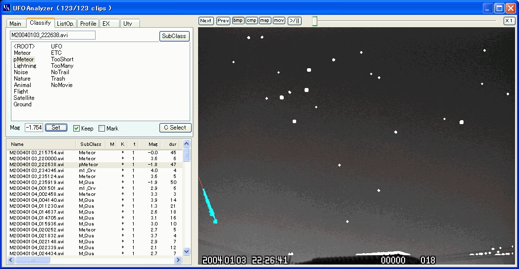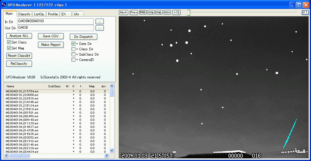 UFOAnalyzerは動体の自動分析、自動分類、自動統計、ネット連携などを目指していますが、いまだ改良の余地は多々あります。