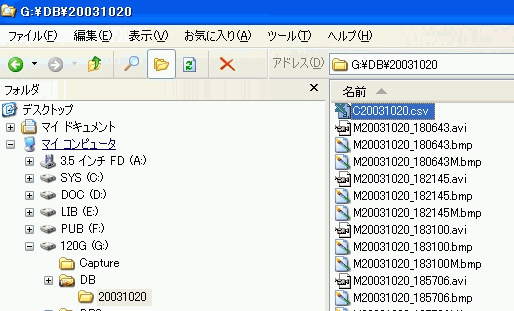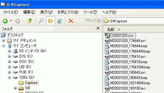 - InDirには以下の G:\Captureのように、UFOCaptureExのマルチファイルモードでキャプチャされたログ(Cxxx.csv)が格納されている必要があります。