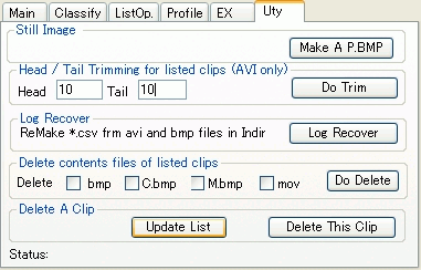 - ログファイルが破壊されている場合にはUtyタブで最低限度のログファイルを復元することができます。