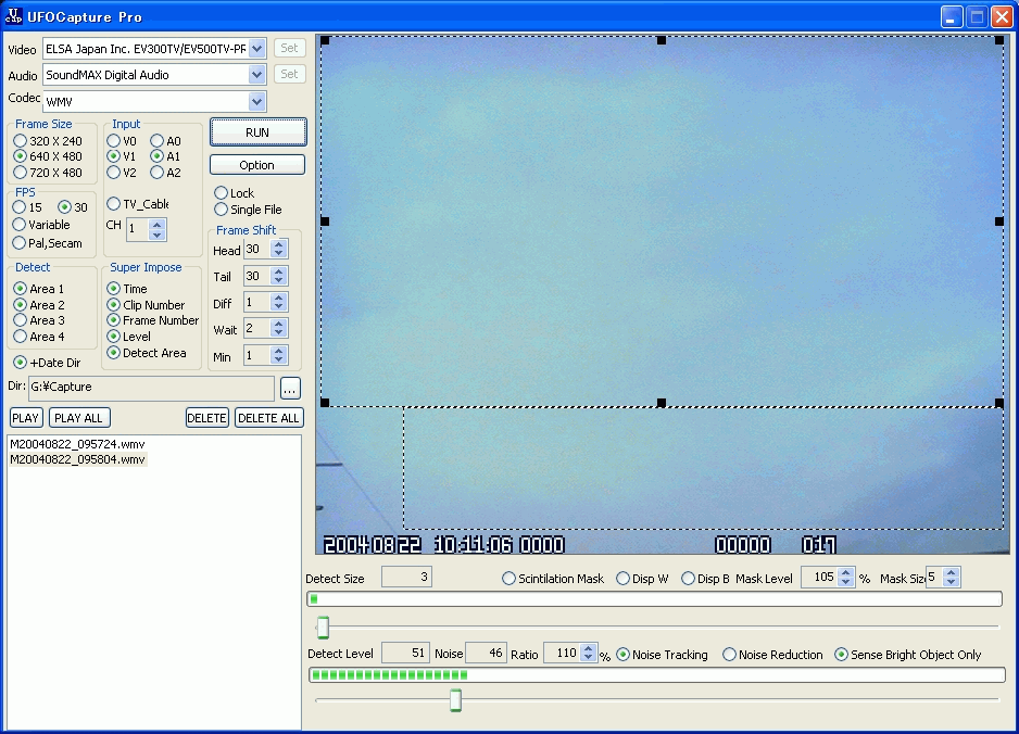 UFOCaptureProはUSBカメラ、IEEE1394(DV)カメラ、ビデオ入力ボードなどからの映像を監視し、