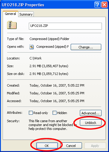 3.Decompress the downloaded package using your own software or the unzipping utility of Windows XP. When you want to use Windows XP’s unzipping utility, take the steps below: *Right-click the package (*.zip) downloaded with Explorer. (Windows XP has a standard utility for unzipping files. An lzh extractor does not come standard with XP; you need to install add-on software by Microsoft.) 4. If necessary, move the directory created by extraction (UFO2 in the case of UFOCaptureV2) to a desired location. ( the path name of the location should include only alpha numeric characters such as "c:\ufo2 ". If directory contains multibyte characters such as Japanese or Chinese, it causes problems often.) 5. Install the software, referring to its manual.
